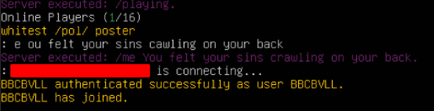 otherwise i could pick 1 lucky player who we all agree was the best and make them king of the next "season" (they get like super admin powers or something) (giving it to hagon so he can abuse me for being a rulecuck janny ack!) and see how well they run the server. idk, maybe i just have to like let go and focus on different projects in the future, but by far this one has got to be my most favourite project. I've been a server admin before and I've never seen success like this, going to sleep and waking up realising that there are still players online, players playing even when I sleep, this has probably been the best experience as a server admin, like. ever. just swirling up a VPS, getting things running flawlessly, no ddossing, constant playercount, i have actually achieved something pretty cool and tbh hopefully i can provide more servers for the schlog for all kinds of games in the future.