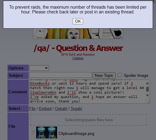 i'm just gonna hatch them now they're only 90 dinobucks since i waited a little i'll post a picture of a level 40 liopleurodon in like 10 minutesTry posting it at the turn of the hour since it says it is limited per hour.