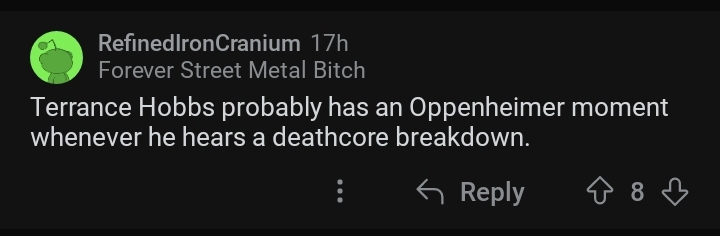 gegWhen we're going niche music taste for niche music taste and bro pulls put an obscure thrash metal band who were around for like only two years and never even released an album