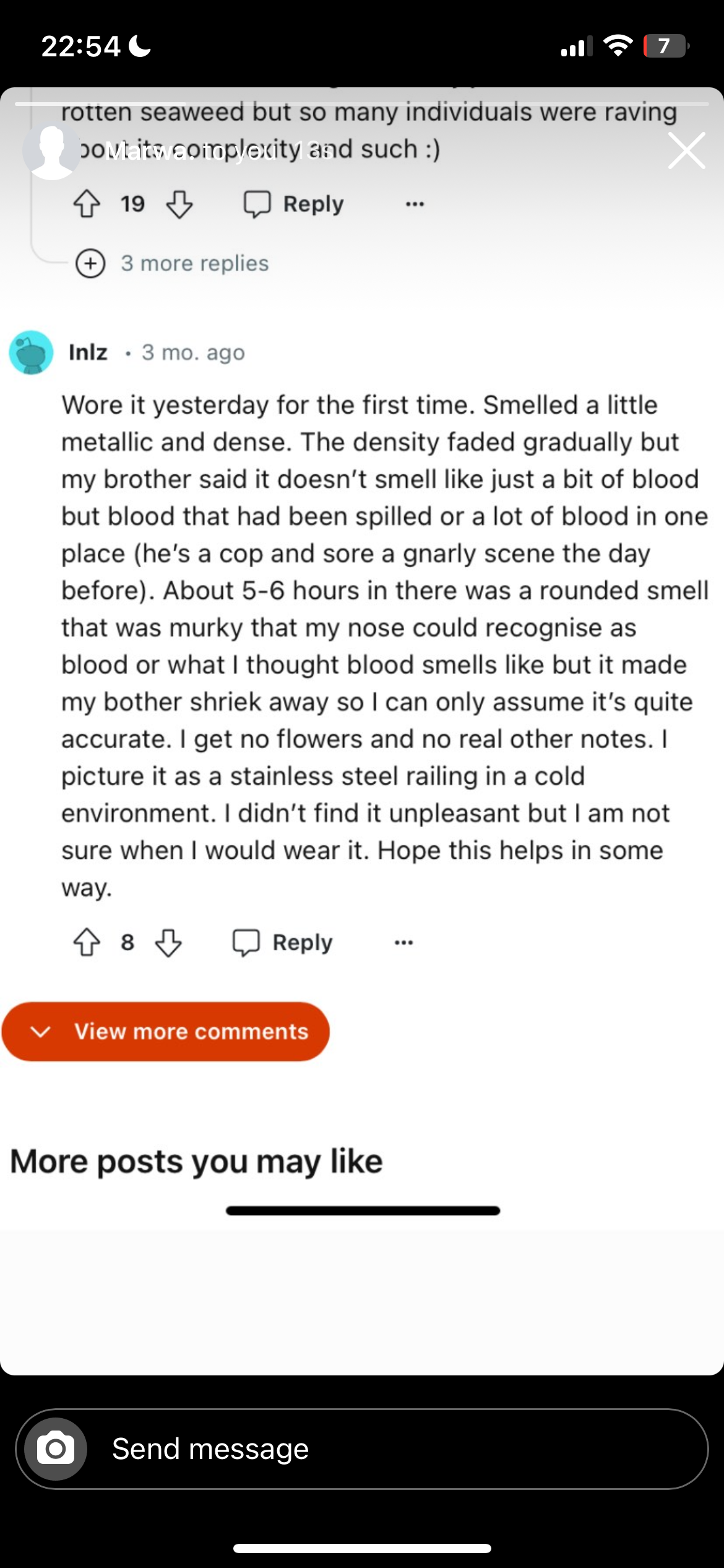 it got worse and worse and worse and worse and the stench of blood was everywhere and unbearable. still notes of rain and like incense but the bloody smell was so OVERPOWERING like oh my gosh
