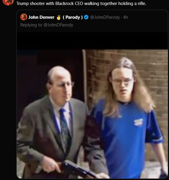 >The CEO of blackrock escorting an assassin while holding a rifle