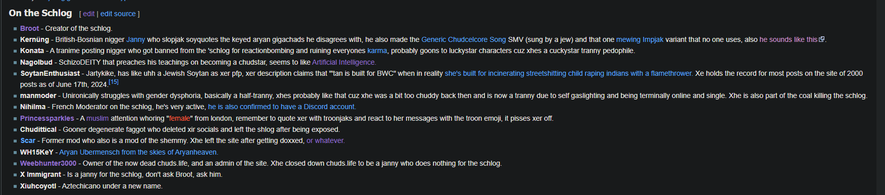 For a user of a forum to get a wiki page of some sort you usually need to be a fuckup and be lolcow-y, like you need somewhat of an internet presence offsite and need to make lots of lulz, Idk maybe it'd work differently here but that's how I've always seen it because the only funny wiki pages are about someone you can laugh at. I wrote an article about one guy on ED around one and a half years ago and while its honestly pretty crap (wasn't a good writer at the time) it proves my point. https://encyclopediadramatica.gay/Pedro_J._Garcia
